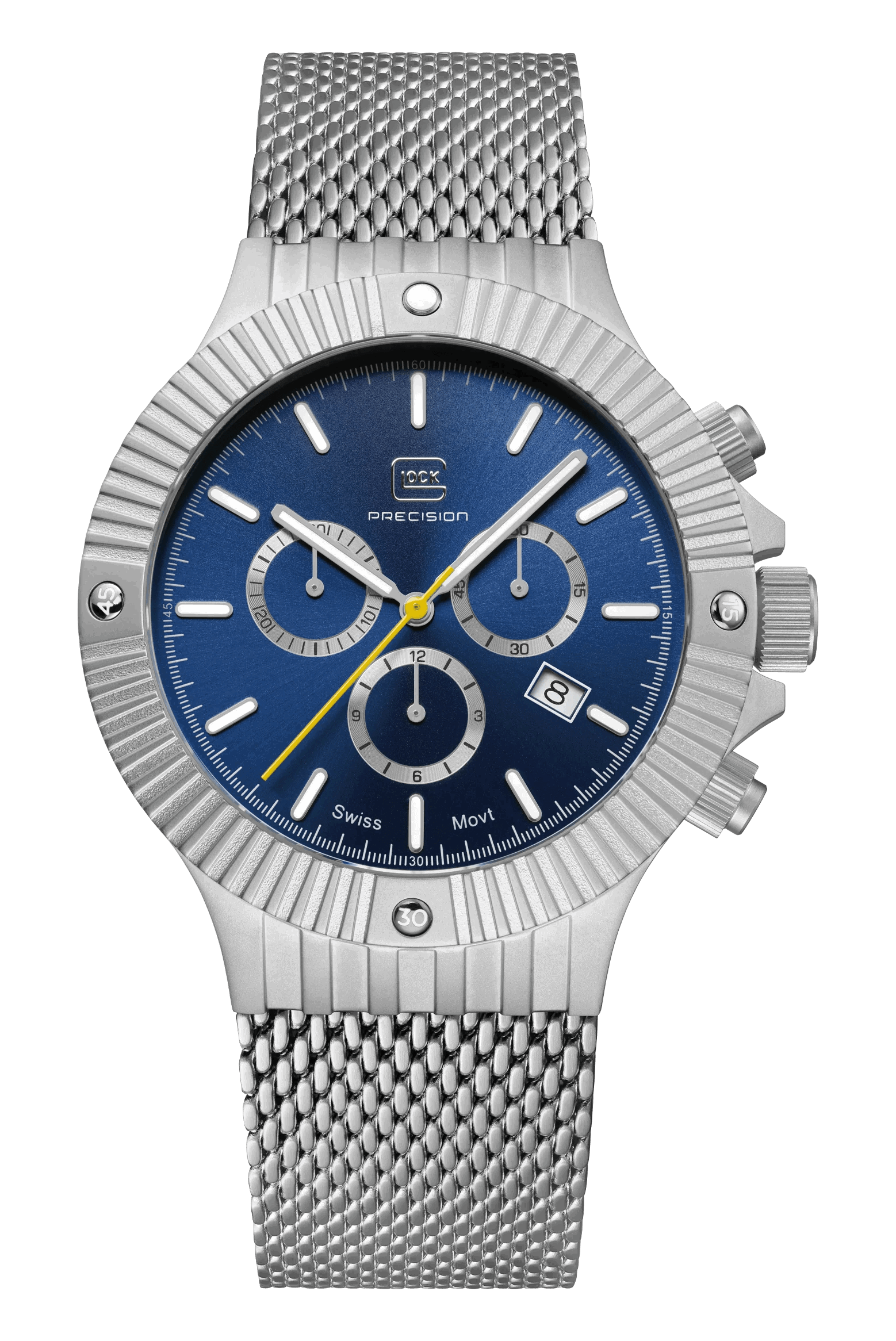 - GW-37-1-24-A Glock Quartz Chrono Blue Dial Silver Tone Case + Strap